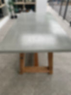 White concrete dining table with natural Ironbark legs